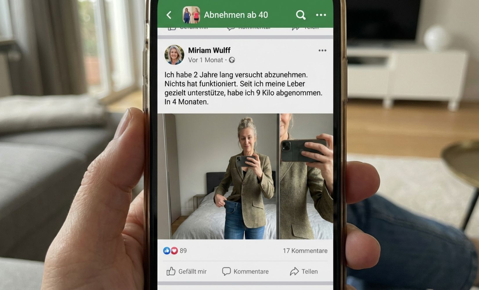 Letzten Januar saß ich abends wieder mal auf dem Sofa und scrollte durch die Facebook-Gruppe „Abnehmen ab 40 – Erfahrungen & Tipps“. Eigentlich nichts Besonderes – ich bin da öfter mal, weil ich schon seit Jahren versuche, meine überflüssigen Kilos loszuwerden.