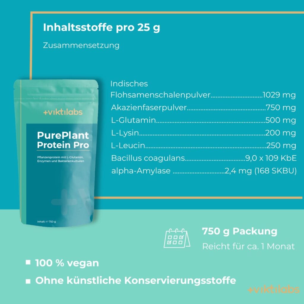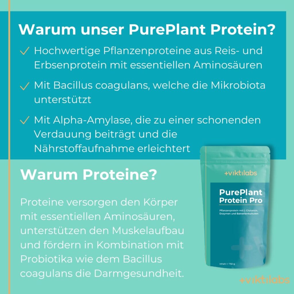 PurePlant Protein Pro mit L-Glutamin, Enzymen & Bakterienkulturen - für alle, die genug von Blähbauch, künstlichem Geschmack und klumpigen Shakes haben (gerade über 25 % sparen)