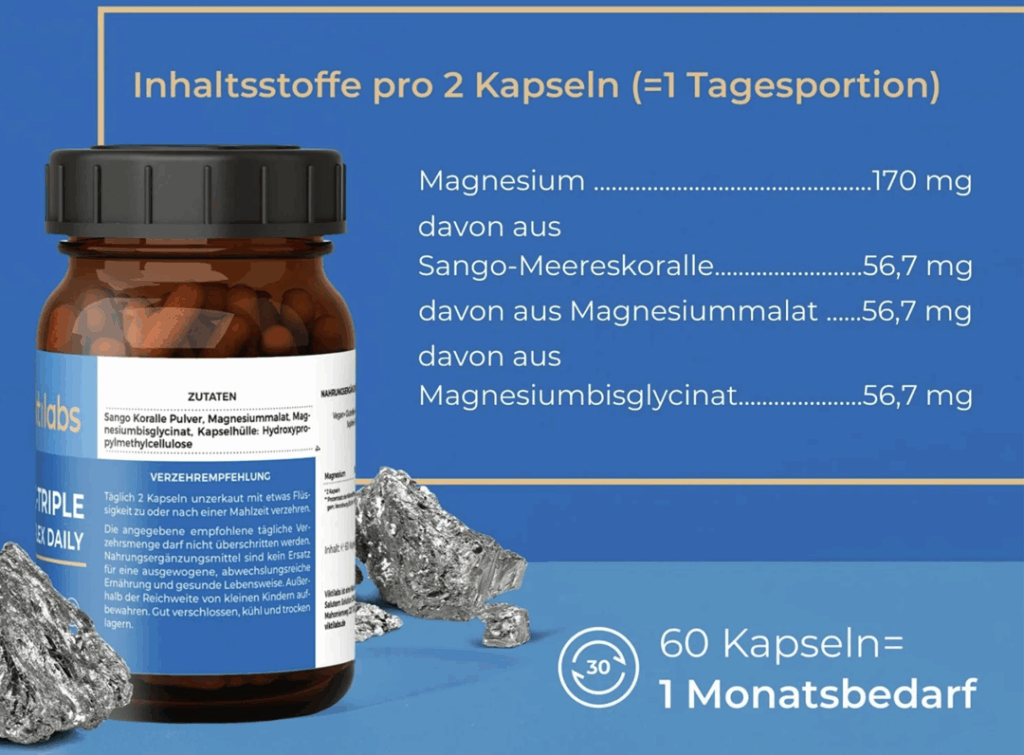 Das bedeutet: Du bekommst nicht nur Magnesium, sondern gleichzeitig einen Energieboost auf zellulärer Ebene.