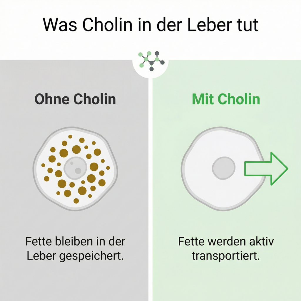 Und Cholin ist der einzige Inhaltsstoff, für den die Europäische Union einen offiziell zugelassenen Health Claim für die Leberfunktion vergeben hat — regulatorisch geprüft, nicht selbst behauptet: Cholin trägt zur Erhaltung einer normalen Leberfunktion bei [8].