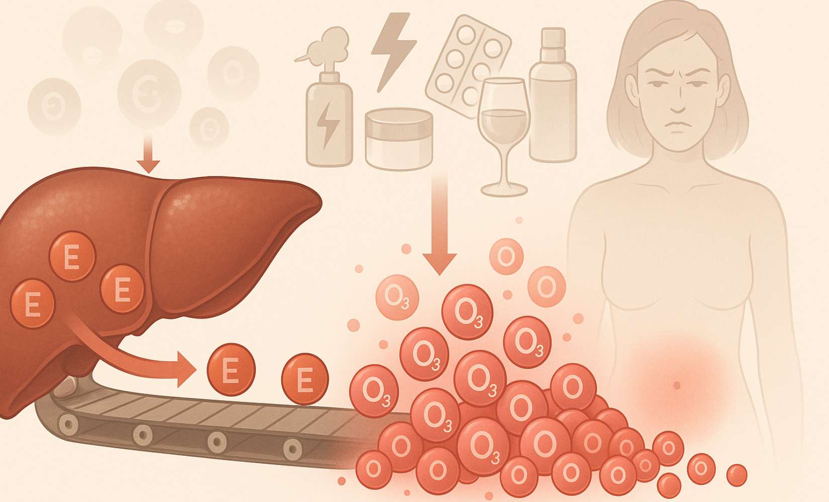 Die Leber muss wie eine Recycling-Anlage für Hormone arbeiten, die oft mehr bewältigen muss als vorgesehen. Wenn sie überlastet ist, stauen sich die alten Hormone im Körper – besonders Östrogen wird nicht mehr ausreichend abgebaut.