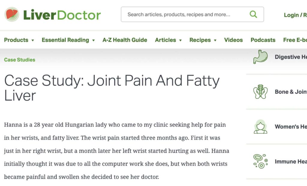 Sie fuhr fort: „In den letzten Jahren haben wir festgestellt, dass bei vielen Patienten mit scheinbar unerklärlichen Gelenkproblemen meist die Leber die eigentliche Ursache ist.“